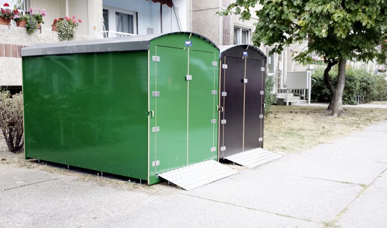 Die rollabo XXL bietet Ihnen sicheren Stauraum für E-Mobile und E-Scooter.  Bringen Sie Ihr E-Mobil sicher und trocken in der Minigarage unter. Schweres Schleppen und Dreck in der Wohnung gehören der Vergangenheit an.