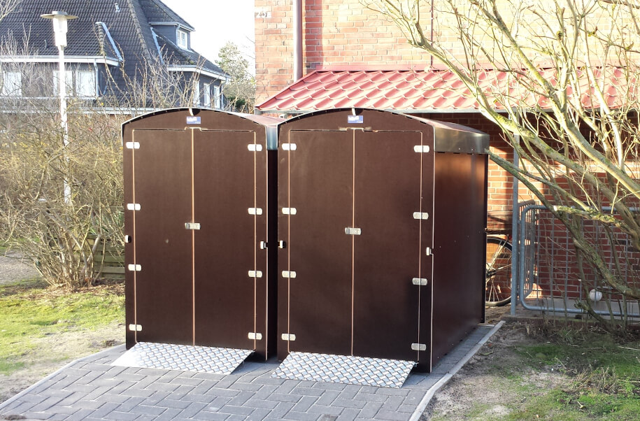 Für lange Elektro-Rollstühle ist die rollabo XXL die ideale Aufbewahrungslösung. Die wertvollen Geräte können unbesorgt in der Minigarage zurückgelassen werden – auf Wunsch mit Stromanschluss in der Box.